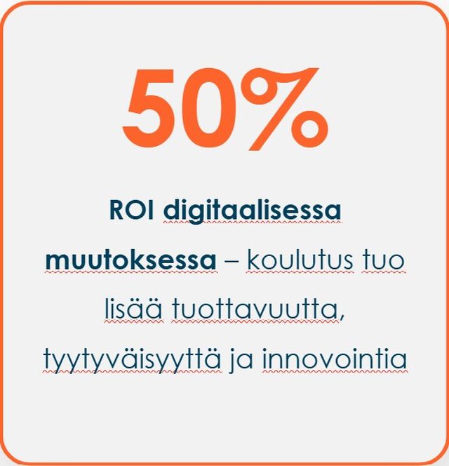 Todisteet puhuvat puolestaan: koulutukseen panostavat yritykset saavuttavat yli 50 %:n ROI:n digitaalisessa muutoksessa. Hyödyt näkyvät tuottavuudessa, asiakastyytyväisyydessä ja innovaatioissa.