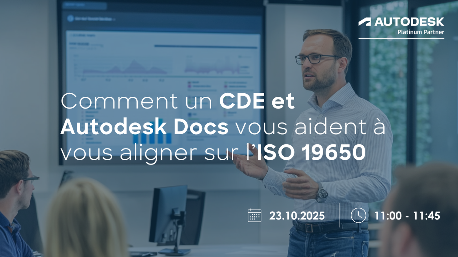 Le jeudi 23 octobre, découvrez comment commencer à améliorer concrètement vos résultats de projet. Participez à notre session en direct gratuite de 45 minutes pour apprendre comment Autodesk Docs – déjà inclus dans votre Autodesk AEC Collection – vous permet de créer un Environnement Commun de Données (CDE), de simplifier la gestion de l’information et de répondre aux exigences de la norme ISO 19650.