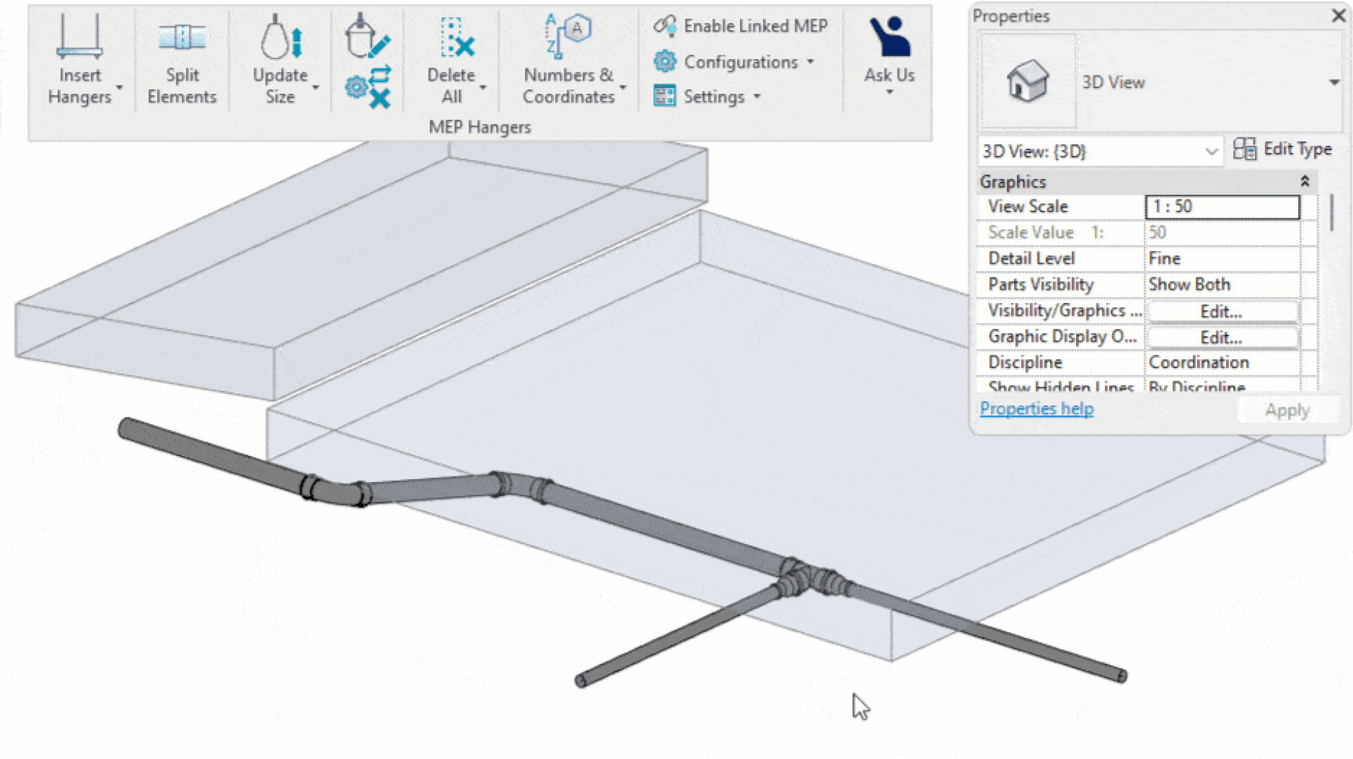 Ha esetleg lemaradt volna róla, a korábbi MEP Hangers frissítés bevezette a lehetőséget, hogy akasztókat és tartókat helyezzen el a kapcsolt fájlok MEP elemein (lásd az alábbi videót).